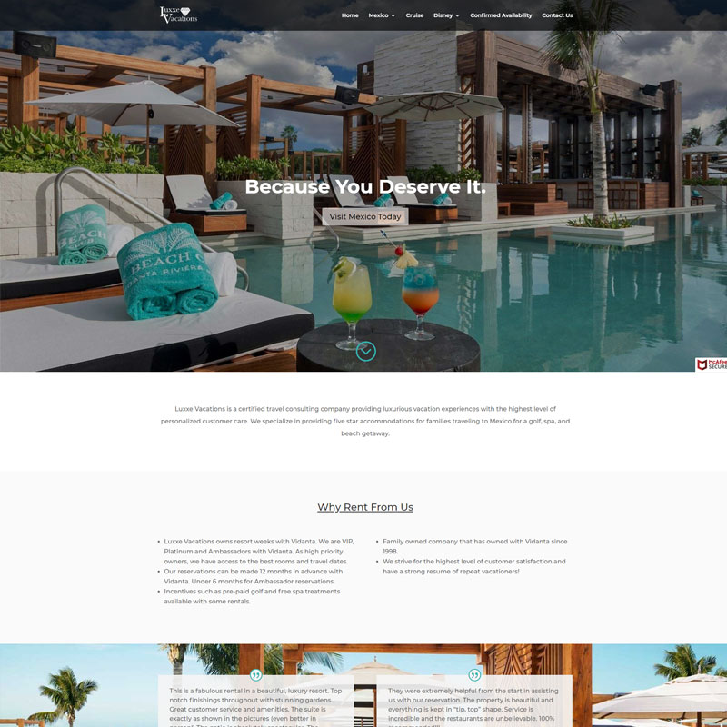 Specializing in five star accommodations, Luxxe Vacations provides luxurious vacation experiences with the highest level of personalized customer care to Mexico with golf, spa and beach getaways.